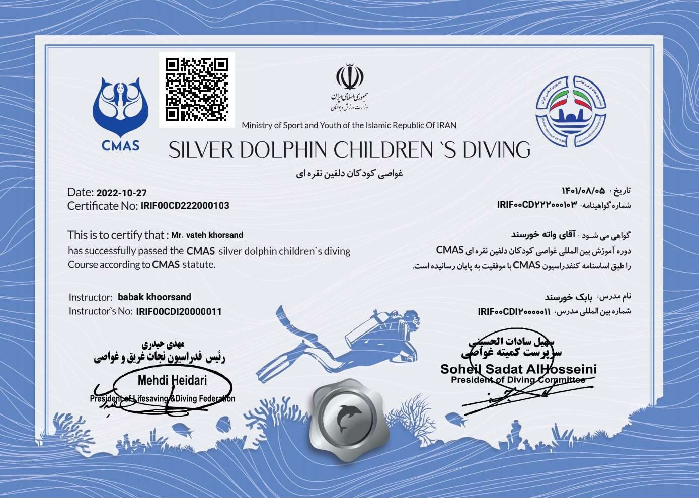 هزینه آموزش دوره غواصی کودکان دلفیننقره استخری 14/200/000 تومان میباشد.