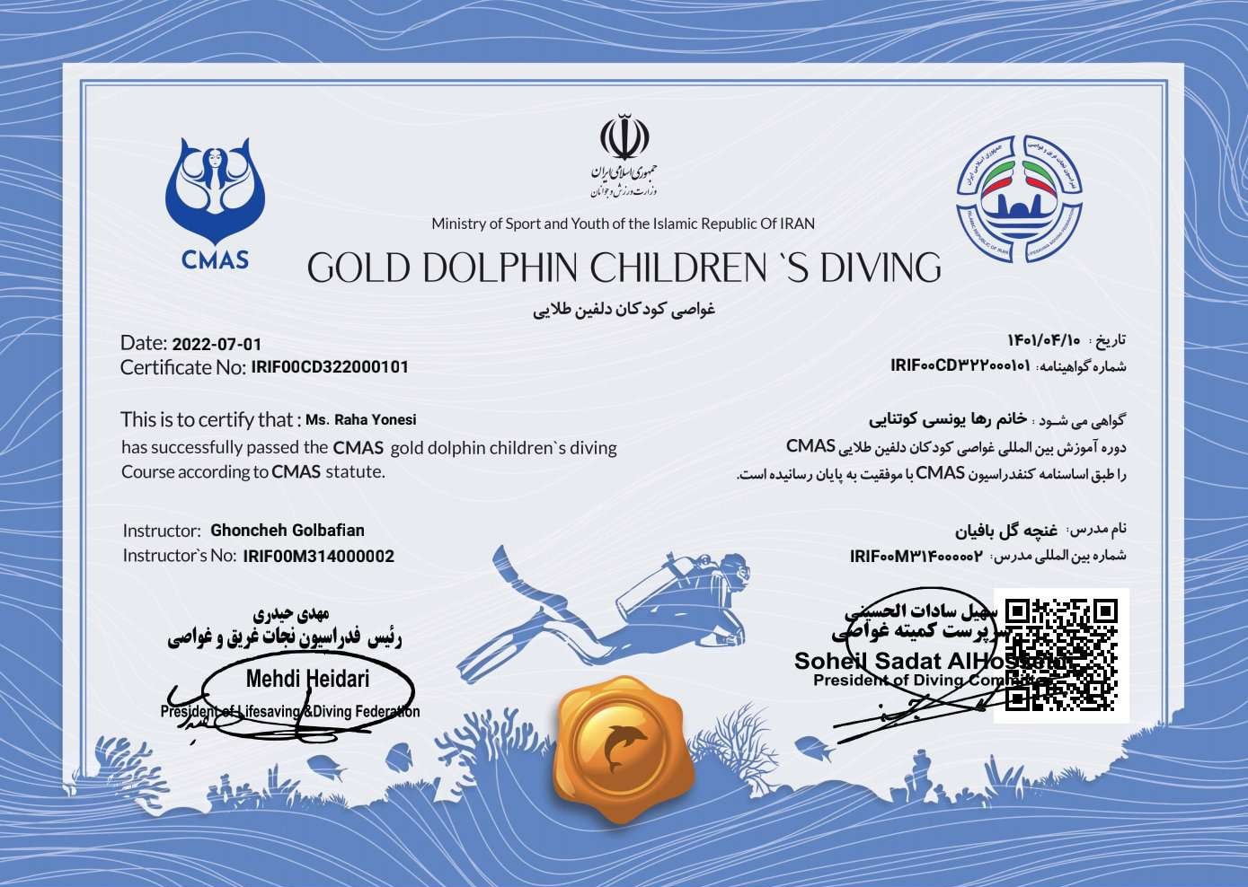 هزینه آموزش غواصی کودکان دلفین برنز دریایی و استخری 15/600/000 تومان است.