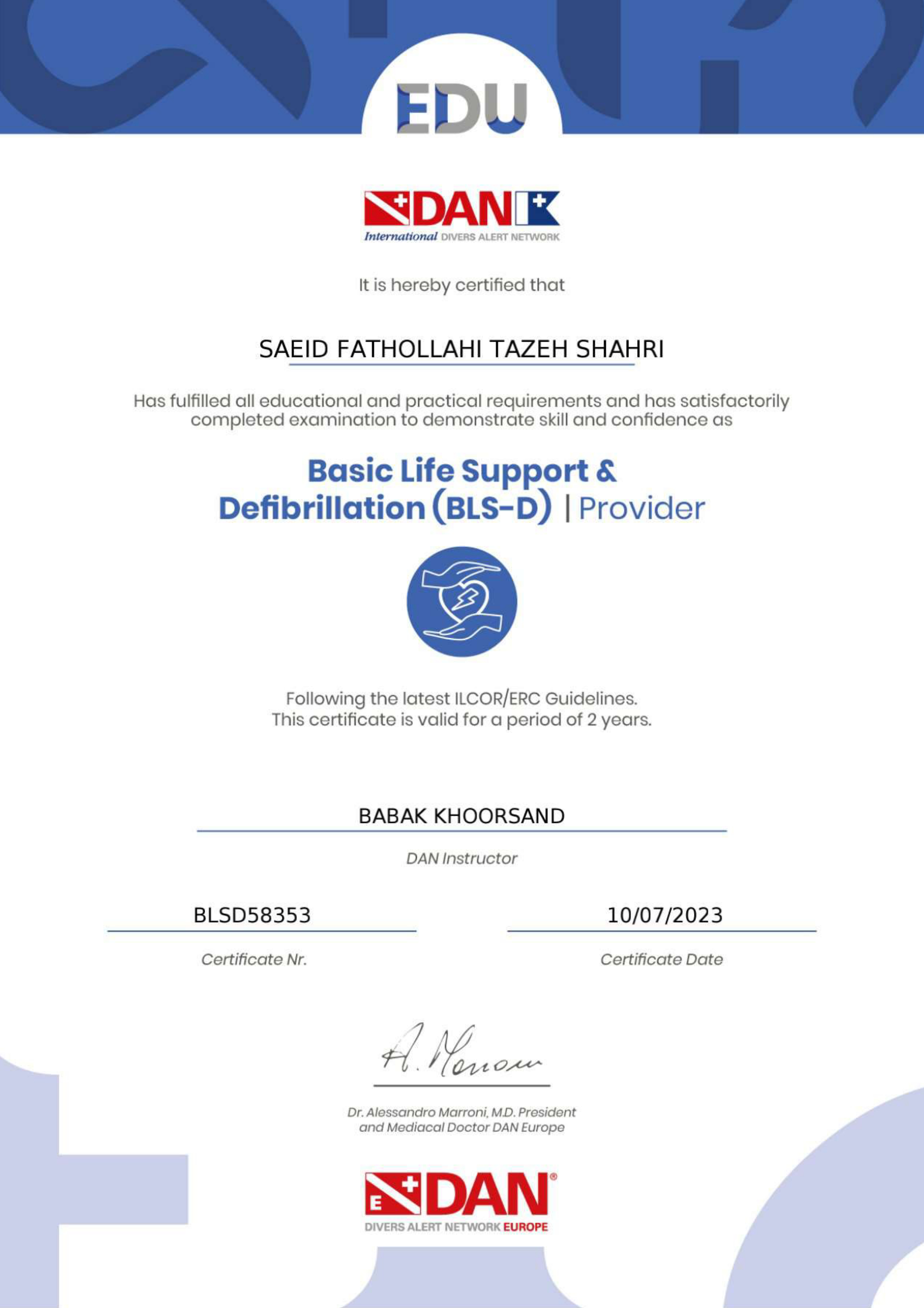 علاقهمندان به دورههای DAN میتوانند کلیه مدارک خود را اعم از اکسیژندرمانی، کمکهایاولیه پیشرفته، HLMI و... را با شرکت در کلاسهای DAN دریافت نمایند.